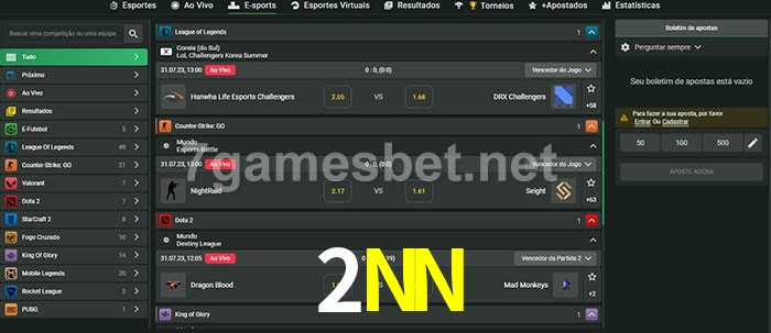 O 2NN oferece uma grande seleção de opções de apostas em e-sports com probabilidades competitivas